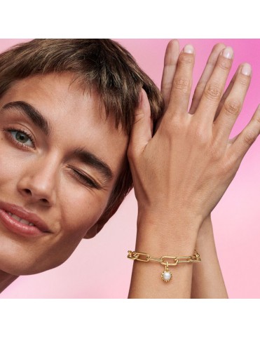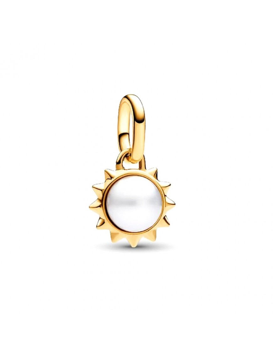Charm Mini Colgante Sol Perla Cultivada de Agua Dulce Pandora ME 763035C01. Fabricado en aleación única de metales con recubrimiento en oro de 14k. Decorado con una perla cultivada de agua dulce tratada y detalles en forma de rayos solares piramidales, simboliza la vida, la luz y la renovación. Compatible con Pandora ME y Moments.
