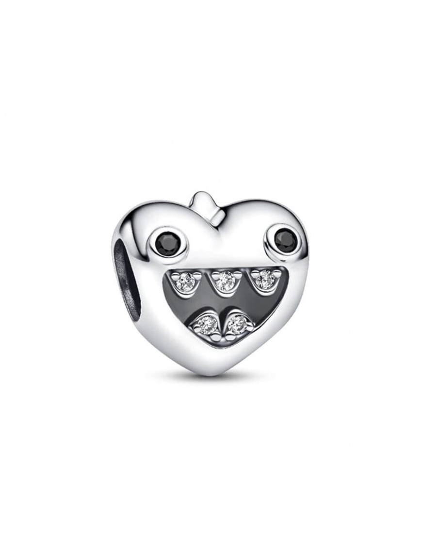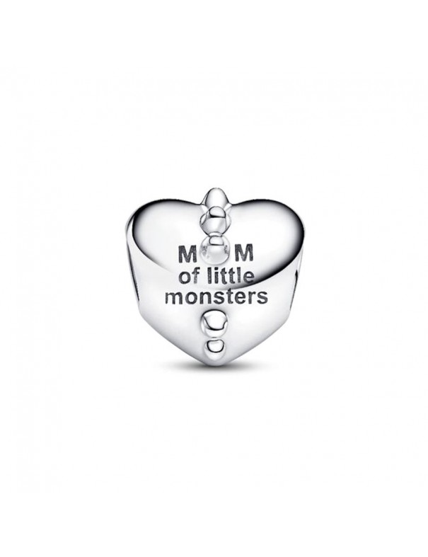 Charm Corazón y Monstruitos de Mamá 793768C01. Charm fabricado en plata de primera ley. Presenta forma de corazón con grabado “Monstruitos de mamá” y divertidos detalles con circonitas y cristal artificial que celebran el amor y el caos alegre de la maternidad.