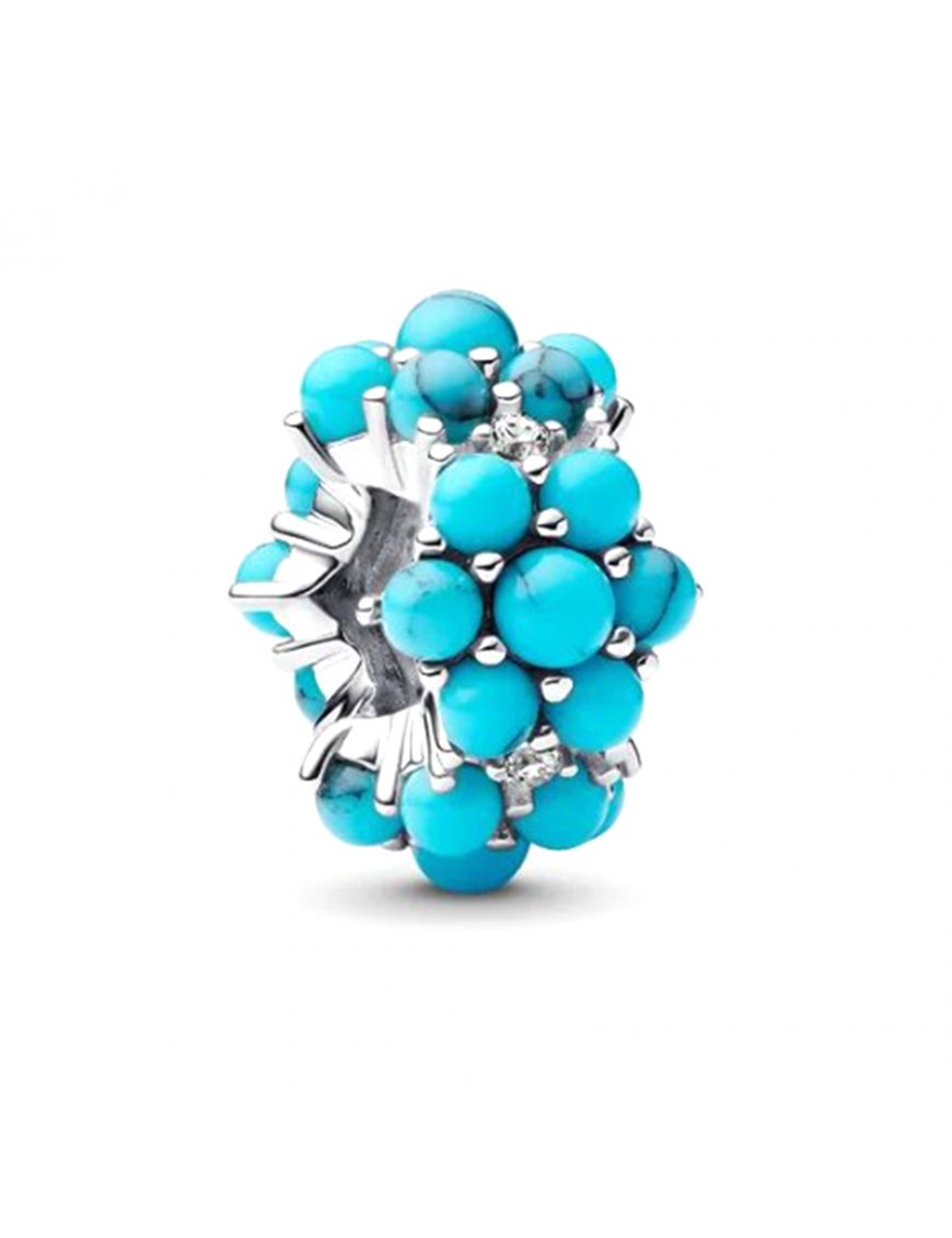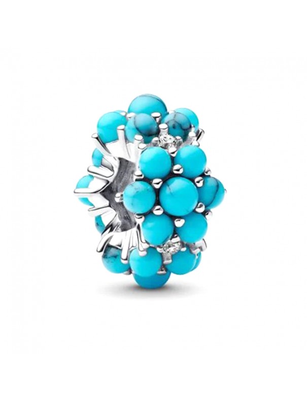 Charm Pandora Océano de Color Turquesa 793897C02. Charm en plata de primera ley. Cuenta con racimos de turquesa sintética y circonitas cúbicas que evocan el brillo y la serenidad del océano. Su diseño delicado y lleno de color azul lo convierte en el detalle perfecto para llevar contigo un pedacito del mar.
