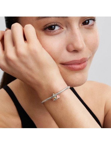 Charm Pandora Dumbo de Disney 764023C01. Elaborado en plata de primera ley con recubrimiento en oro de 14k. Presenta detalles en esmalte brillante y una delicada pluma mágica, reflejando la ternura y valentía del entrañable elefante volador.