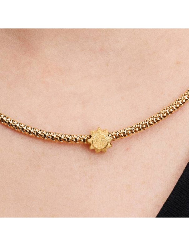 Charm Pandora Mini Sol Textura 764052C00. Fabricado con recubrimiento en oro de 14k, con textura de punta de diamante que realza su brillo. Simboliza calidez, energía y positividad, recordando que tu luz puede iluminar cualquier entorno.