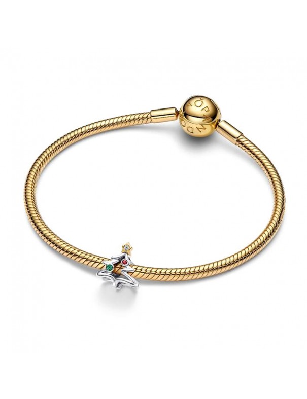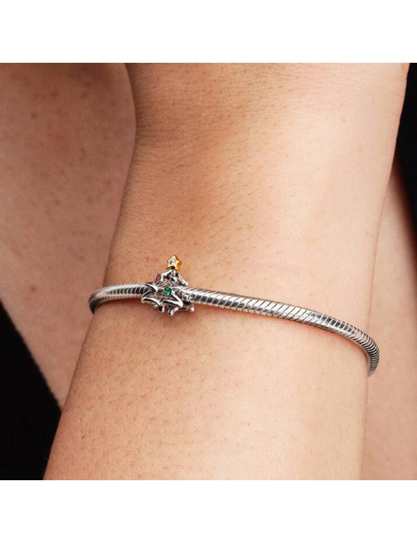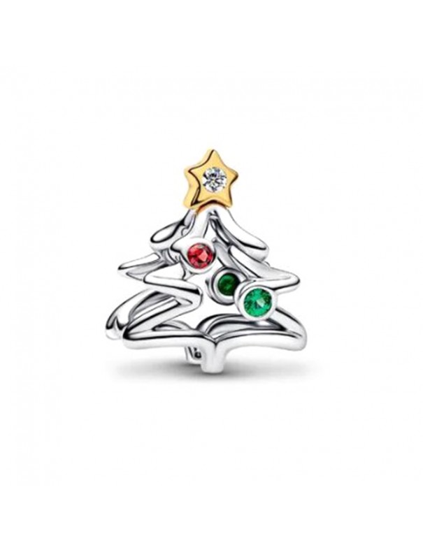 Charm Pandora Árbol de Navidad 764248C01. Charm con forma de árbol de Navidad elaborado en plata de primera ley. Presenta cristales sintéticos en tonos rojo y verde, además de una estrella brillante recubierta en oro de 14K en la parte superior. Un diseño festivo y elegante que añade un toque de luz y color a cualquier pulsera.