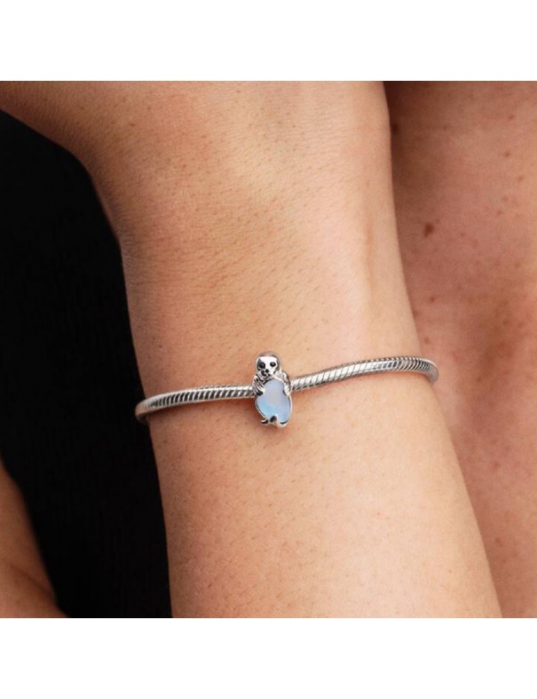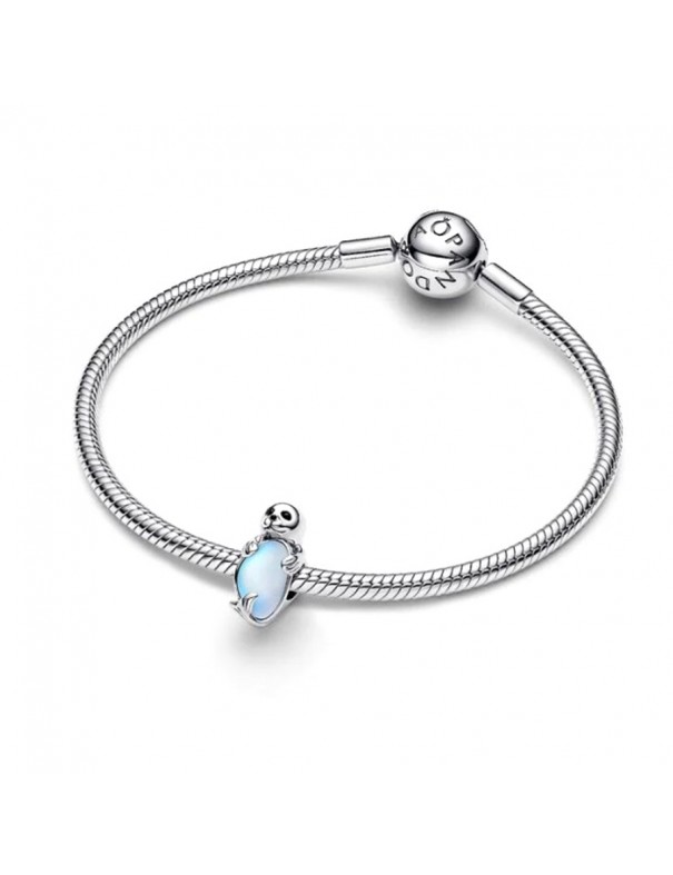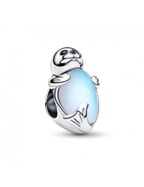 Charm Pandora Foca 794146C01. Encantador charm de foca elaborado en plata de primera ley, con ojos de cristal sintético brillante y un iceberg realizado en cristal iridiscente con efecto gema luna. Su diseño artesanal refleja ternura y conexión con la naturaleza marina.