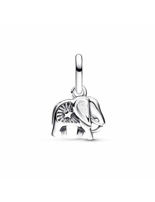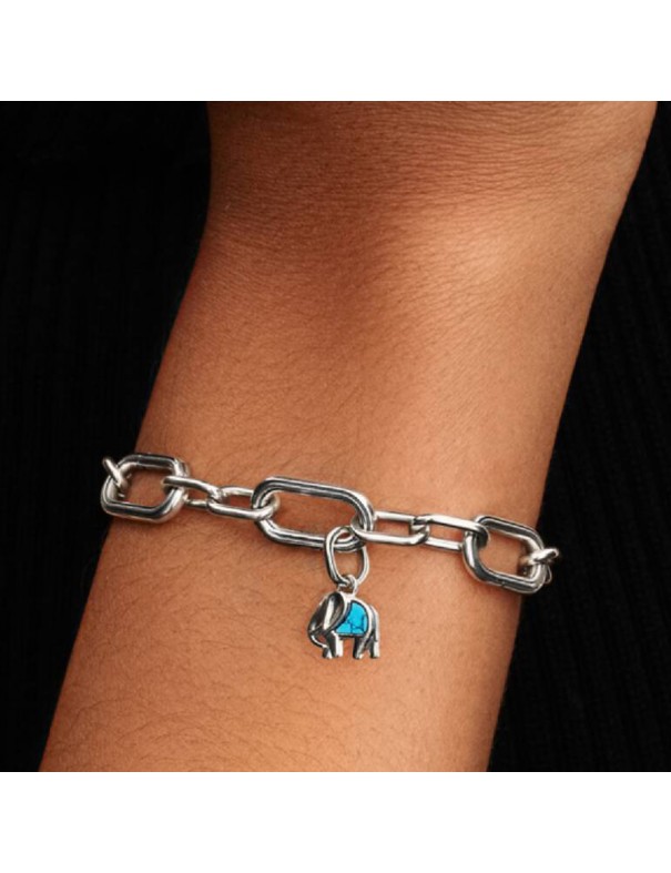 Charm Pandora Mini Colgante Elefante Azul Turquesa 793858C01. Fabricado en plata de primera ley de color plateado, con un pequeño elefante adornado en turquesa sintética de tono azul vibrante. El diseño combina delicadeza y simbolismo. El elefante representa estabilidad y liderazgo tranquilo.