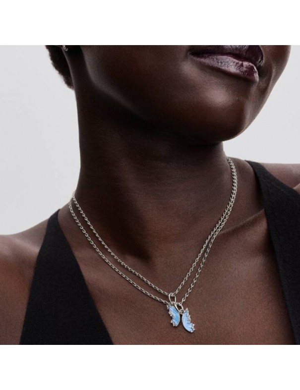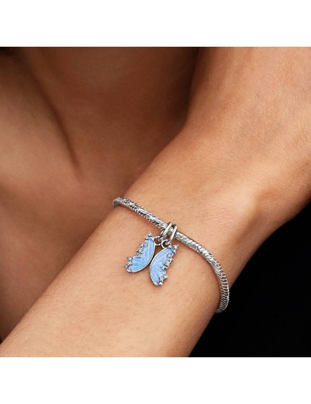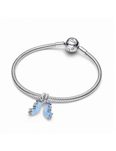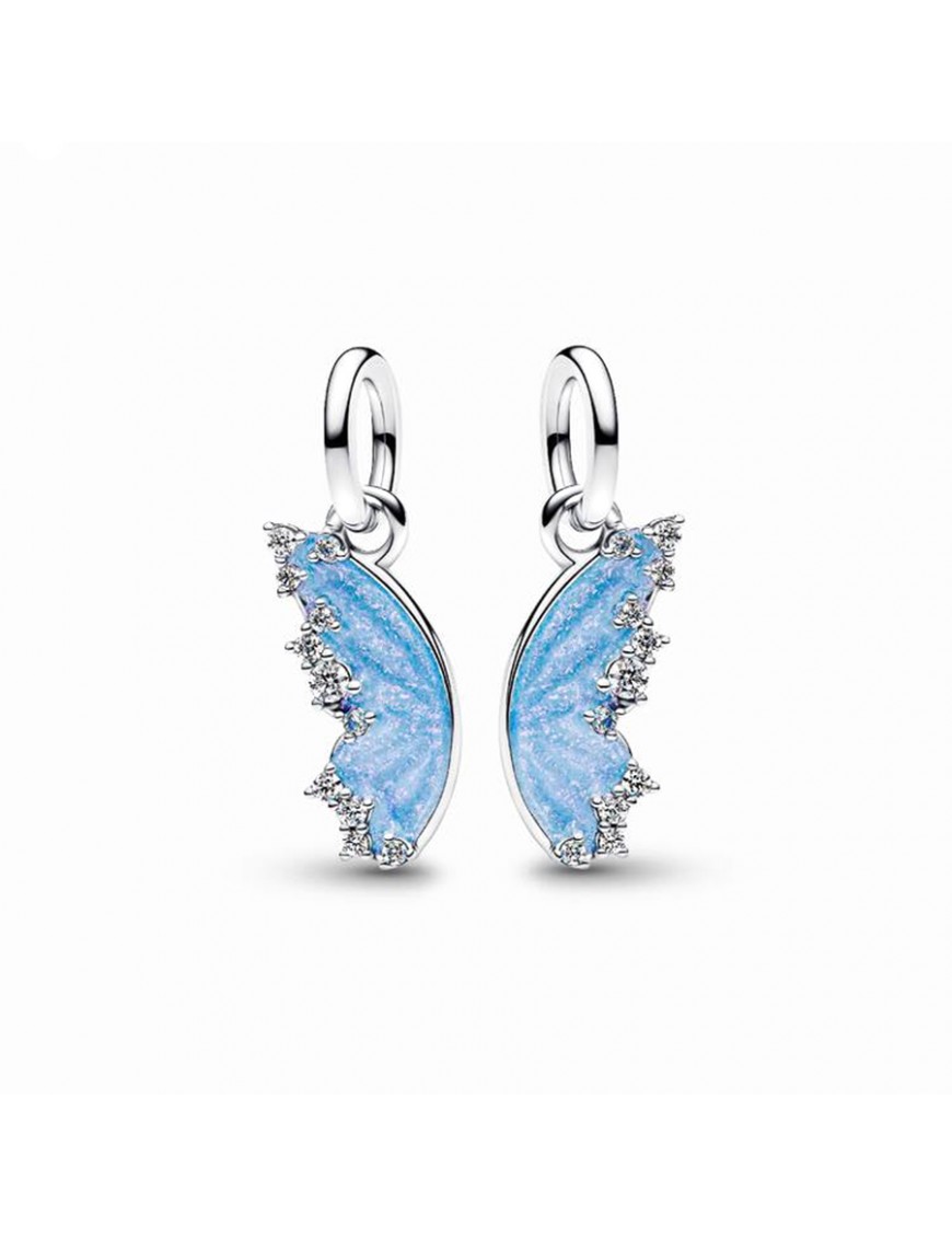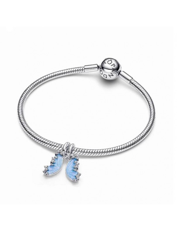 Charm Pandora Colgante Divisible Mariposa 794244C01. Creado en plata de primera ley con diseño de mariposa dividida en dos alas unidas. Las alas cuentan con un esmalte azul brillante y los bordes están decorados con circonitas cúbicas transparentes que aportan un sutil brillo elegante. Cada mitad simboliza un vínculo especial, ideal para compartir con alguien querido.