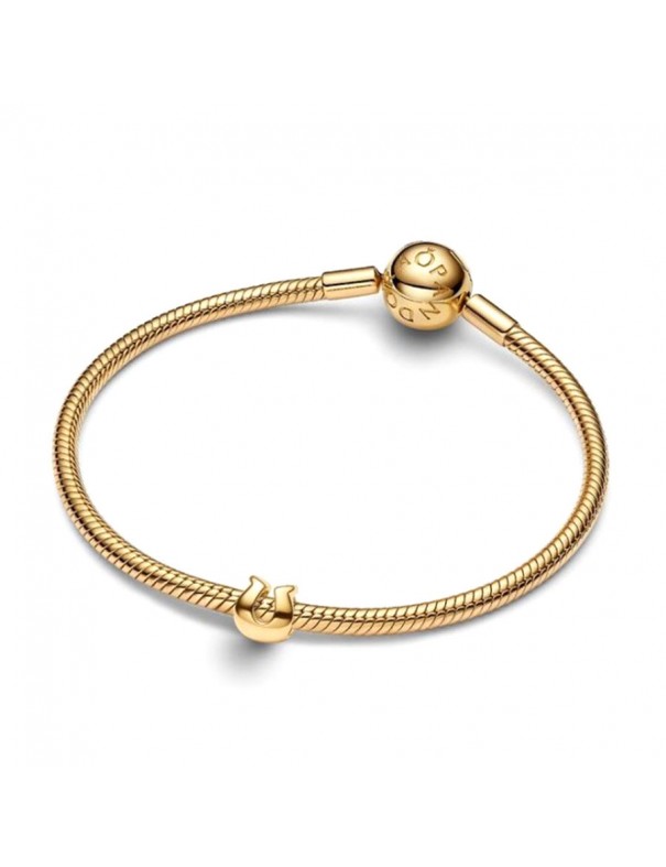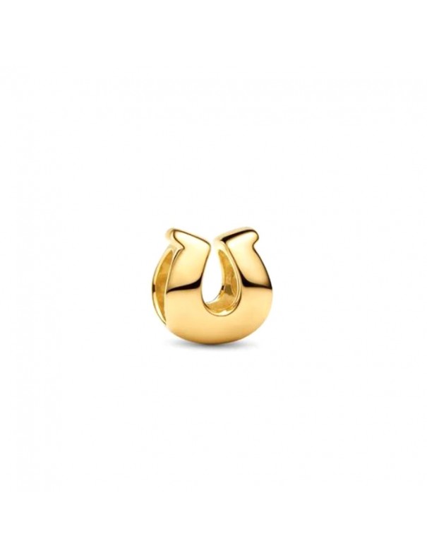Charm Pandora Mini Herradura 764517C00. Charm mini con forma de herradura de la colección Pandora Moments, hecho en metal con recubrimiento de oro de 14 k y acabado pulido en tono dorado que simboliza suerte y protección.