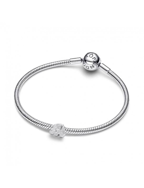 Charm Pandora Mini Elefante Textura 794528C00. Creado en plata de ley 925 con acabado plateado en forma de elefante miniatura con textura diamantada que aporta un brillo sutil y simboliza fuerza, sabiduría y buena suerte.