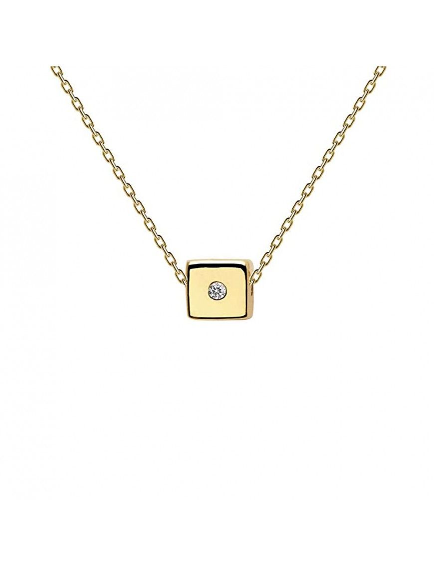 Collar PDPAOLA Dice Gold CO01-091-U, en plata de primera ley 925mls y baño en oro de 18Kts. Cubo de 5X5mm y decorado por una circonita de 1mm de diámetro. Cadena de 55cm, cierre de mosquetón.