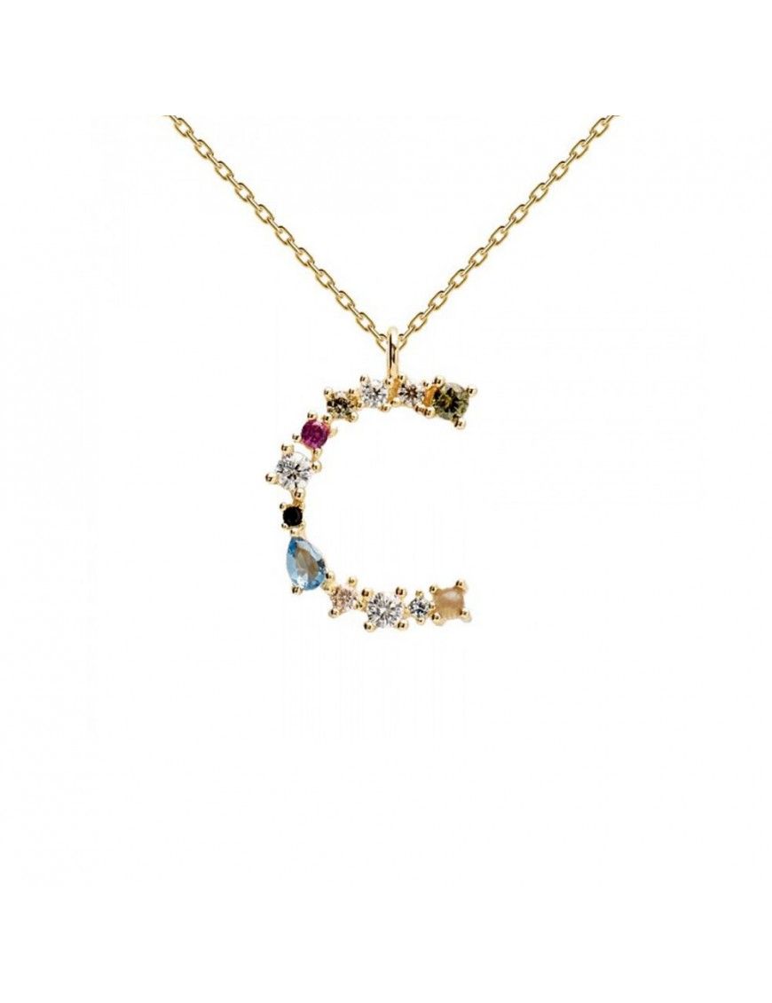 Collar Letra C PDPAOLA CO01-098-U, en plata de primera ley 925mls y baño en oro de 18Kts. Cadena ajustable 35-50cm, cierre de mosquetón. Letra decorada con circonitas de colores.