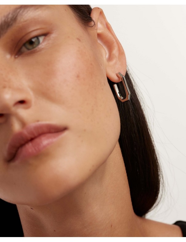 Pendientes PDPaola Signature Link Silver AR02-415-U, en plata de primera ley 925mls. Cierre de presión. Dimensiones 22X10mm.