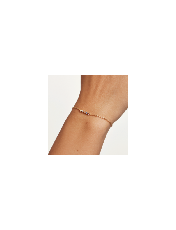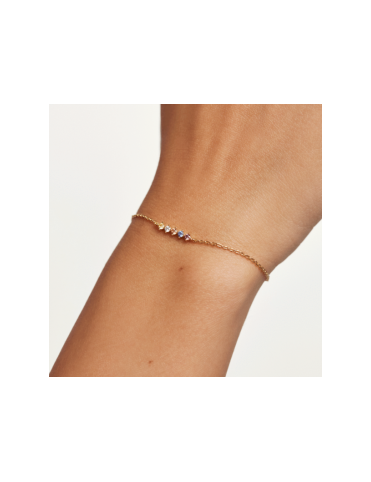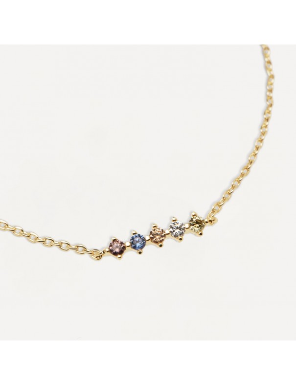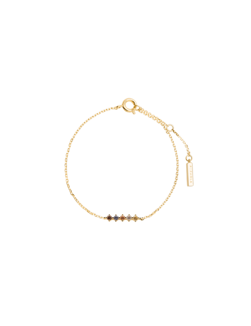 Pulsera PDPAOLA Sage Gold PU01-110-U, en plata de primera ley 925mls bañada en color dorado. Piedras: labradorita, Circonita Apple Green, Circonita Champagne, Circonita Alexand Violet y Circonita blanca. Cierre de mosquetón.