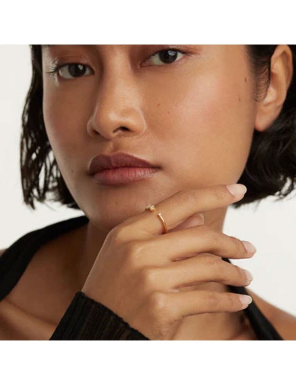 Anillo PdPaola Prince baño de oro AN01-672-12. Está fabricado en plata de primera ley de 925 mls con baño de oro de 18 kts y circonitas. Es de la talla 12. Garantía de tres años.
