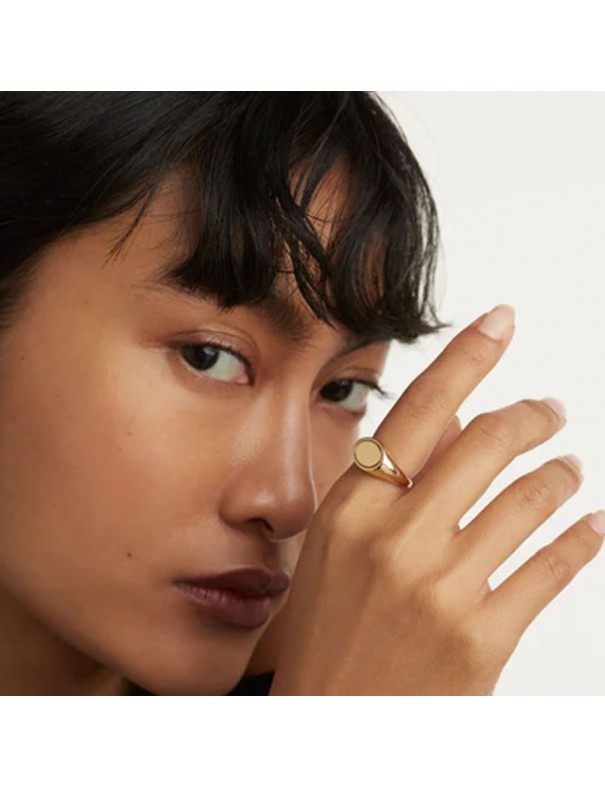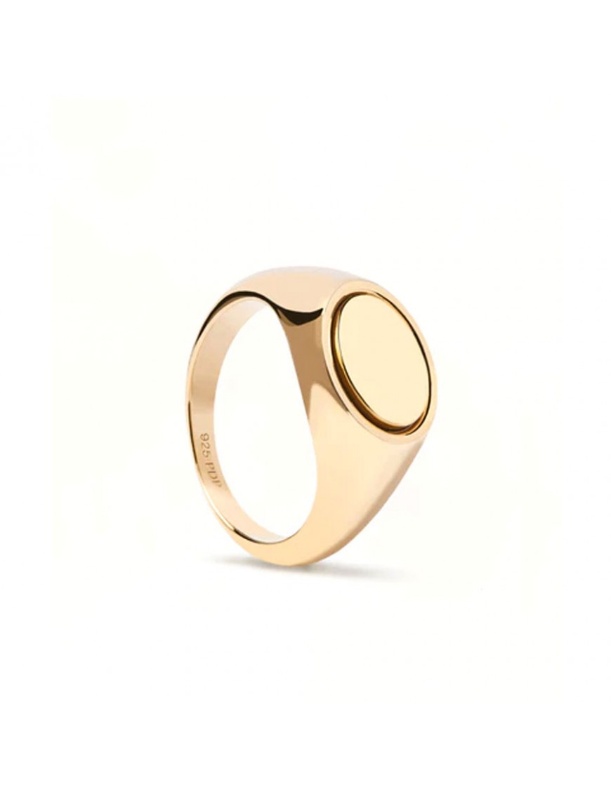 Anillo PdPaola Sello para mujer AN01-628-14. Está fabricado en plata de primera ley de 925 mls con baño de oro de 18 kts. Es de la talla 14. Garantía de tres años.