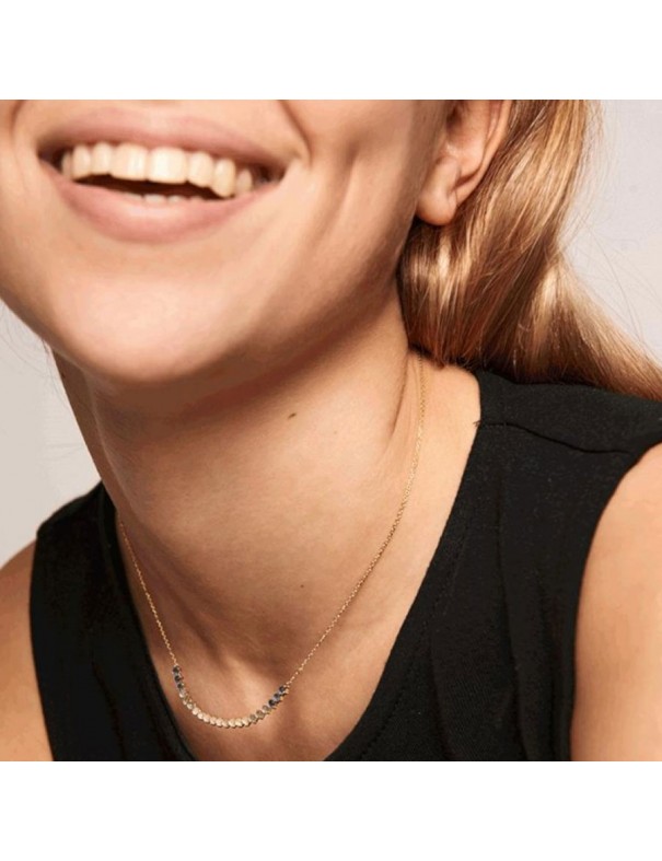 Collar PdPaola Azure Gold CO01-094-U. Está fabricado en plata de primera ley de 925 mls con baño de oro de 18 kts y lo acompañan cristales traslúcidos engastados a mano.