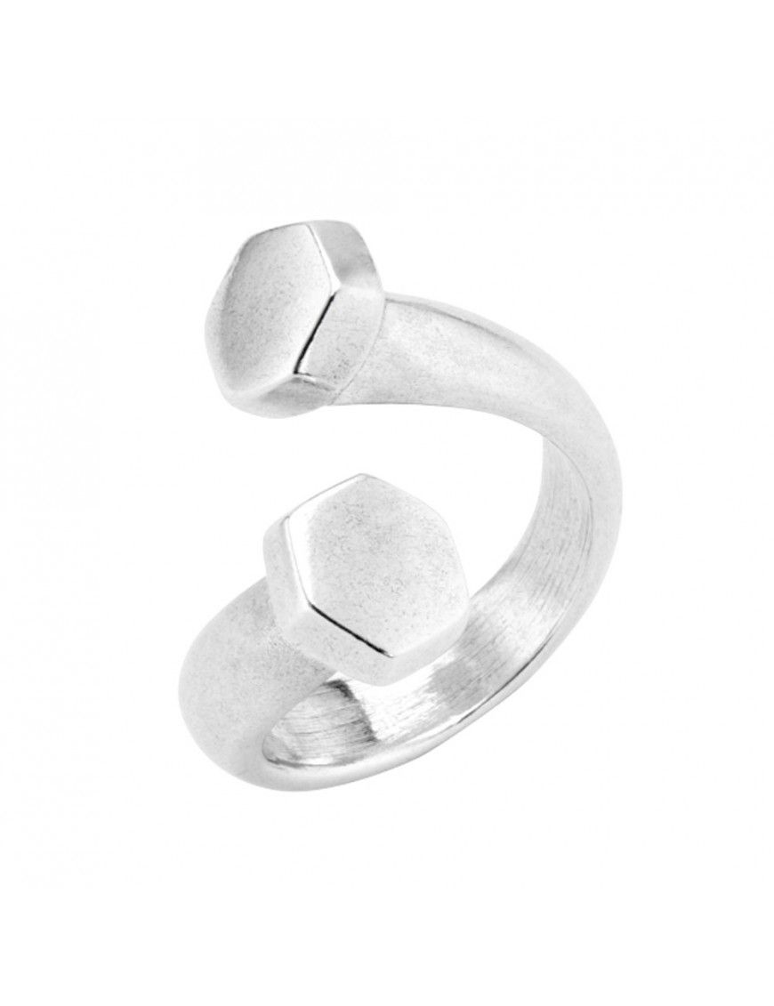 Anillo Uno de 50 Determination ANI0655MTL00015 de metal bañado en plata. Los terminales son dos hexágonos que recuerdan los panales de las abejas. Es de la talla 15. Garantía de dos años contra defectos de fabricación.