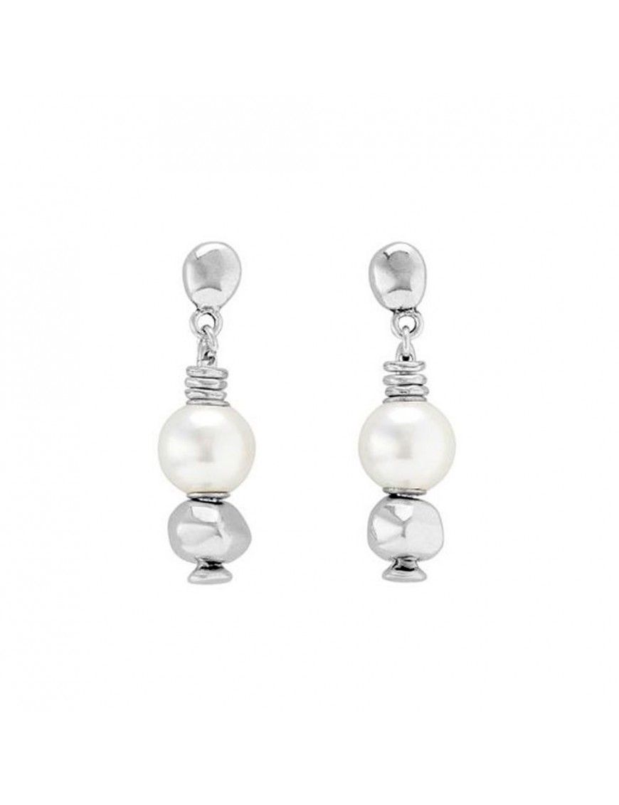 Pendientes Uno de 50 Moody PEN0718BPLMTL0U de metal bañado en plata con perlas. Miden 3,5 cm y tienen cierre de presión. Garantía de dos años contra defectos de fabricación.