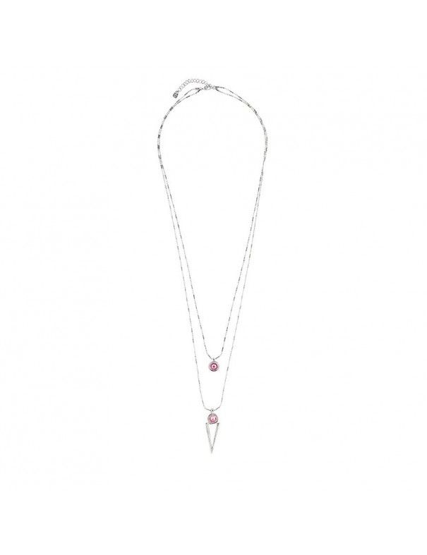 Collar Uno de 50 My Way COL1538RSAMTL0U, en metal bañado en plata. Doble cadena y cristales de Swarovski en color rosa. Dispone de cadenilla de ajuste y cierre de mosquetón. Garantía de dos años contra defectos de fabricación.