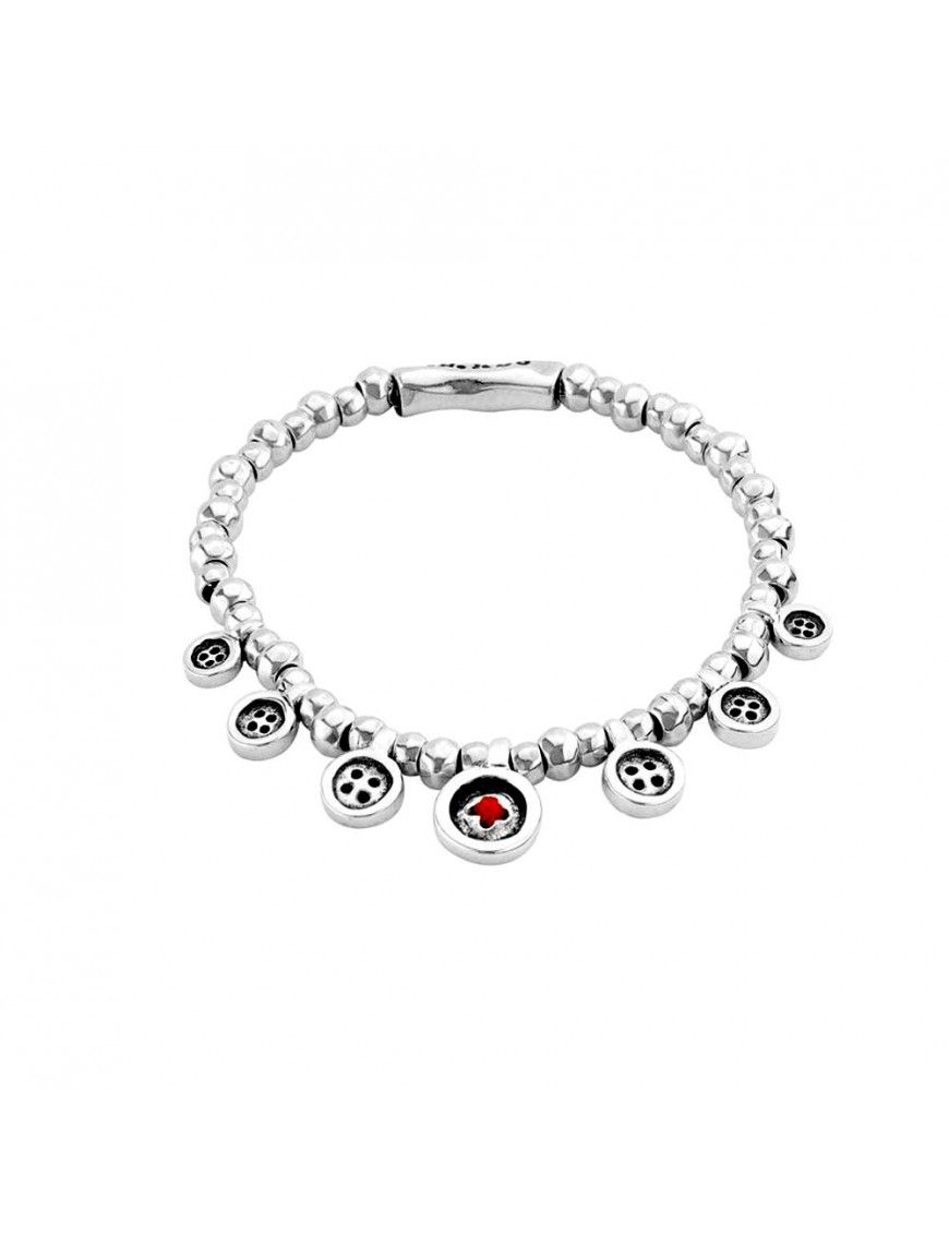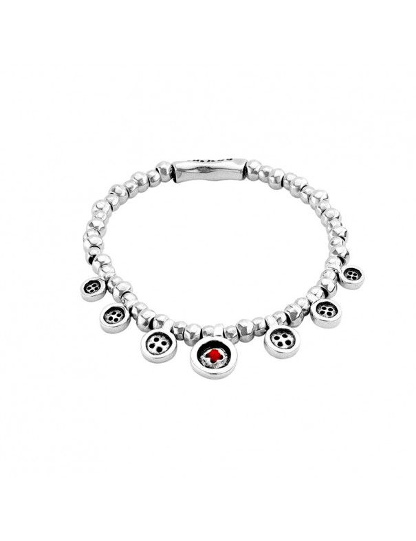 Pulsera Uno De 50 Lady In Red PUL2008MTL0000M, de metal bañado en plata. Elástica de 17cm. Con charms colgantes en forma de botones.