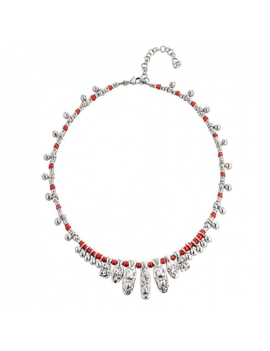 Collar Uno De 50 Peace By Peace COL1510CRLMTL0U, de metal bañado en plata y cristal artesanal color coral. Cierre de mosquetón.