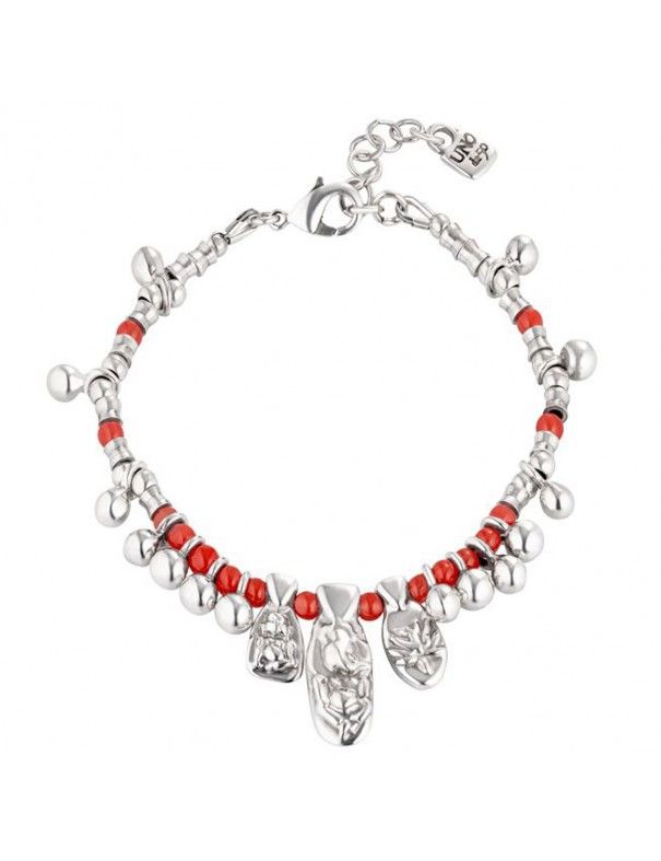 Pulsera Uno De 50 Peace By Peace PUL1961CRLMTL0M, de metal bañado en plata, decorada con piedras estilo natural en color coral. Ajustable de 15 a 17cm. Cierre de mosquetón.
