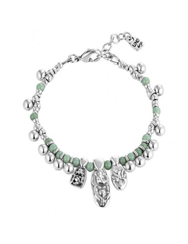 Pulsera Uno De 50 Peace By Peace PUL1961VDAMTL0M, de metal bañado en plata, decorada con piedras estilo natural en color verde. Ajustable de 15 a 17cm. Cierre de mosquetón.