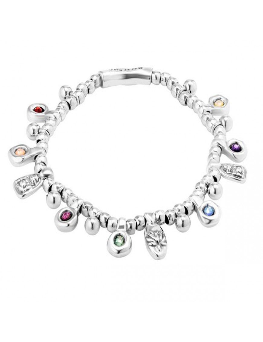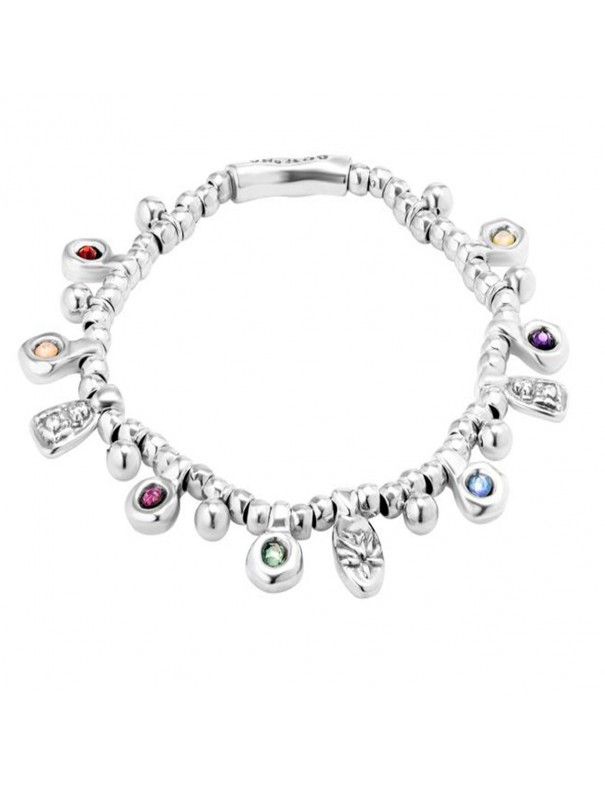 Pulsera Uno De 50 Vitality PUL2232MCLMTL0M, de metal bañado en plata y decorada con cristales facetados de colores. Elástica. Diámetro de 15cm.