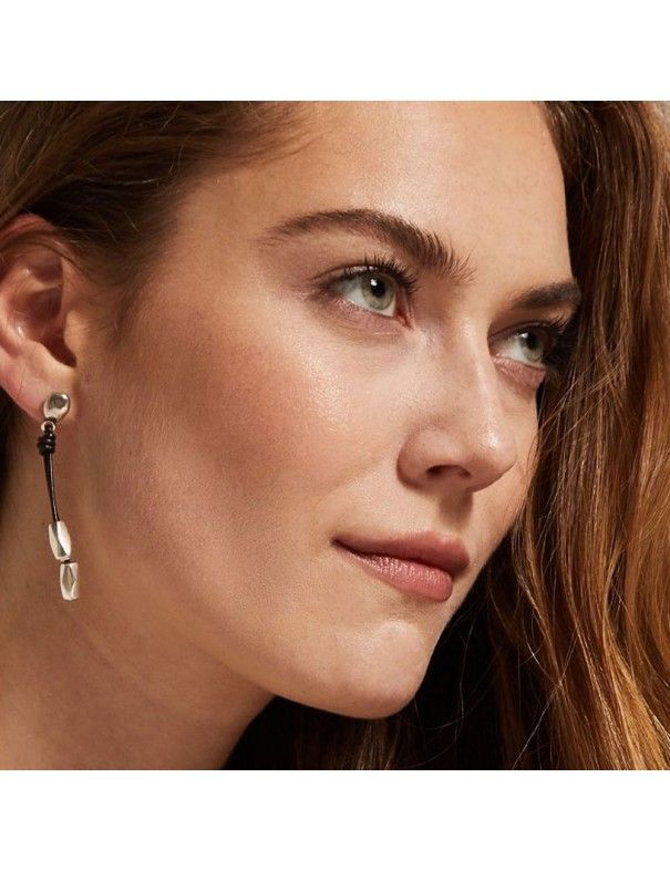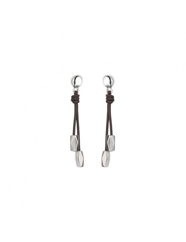 Pendientes Uno De 50 Paths PEN0774MARMTL0U, de metal bañado en plata y cuero. Cierre de presión.