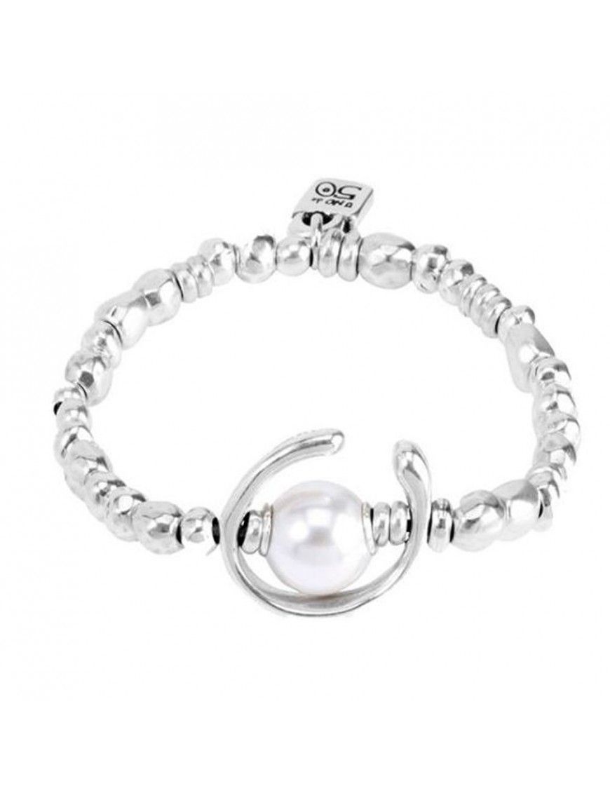 Pulsera Uno De 50 Una Vuelta Más, Oh Oh Oh PUL1358BPLMTL0M, de metal bañado en plata y perla cultivada. Diámetro de 15cm, elástica.