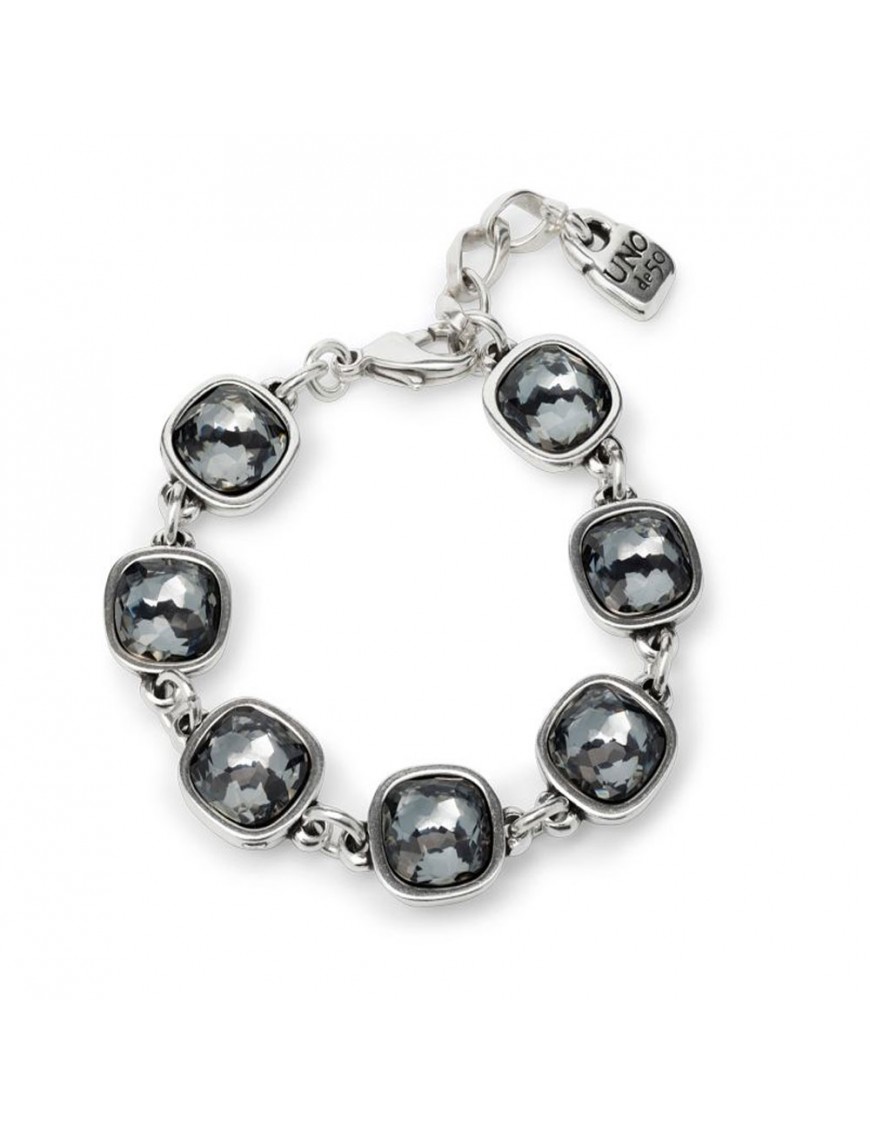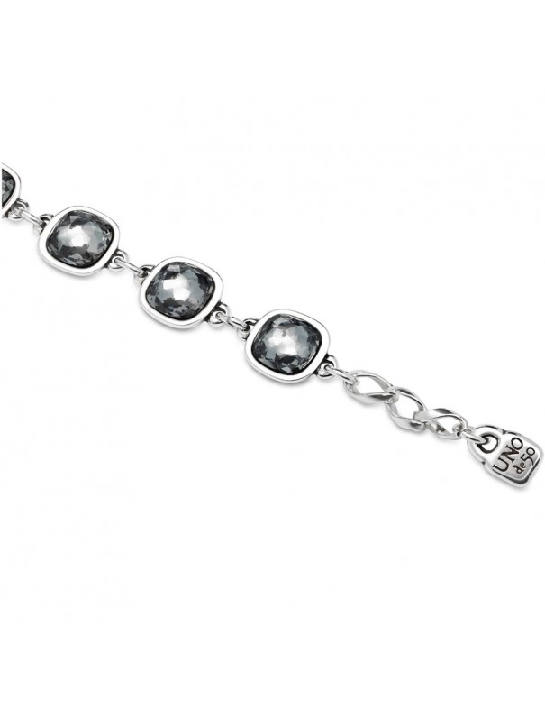 Pulsera Uno De 50 Madeimosille PUL2142GRSMTL0M, de metal bañado en plata. Cristales de color gris. Cierre de mosquetón. Longitud de 15.5 a 16.5cm.