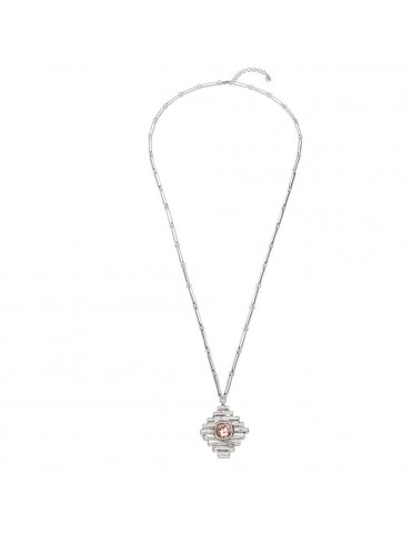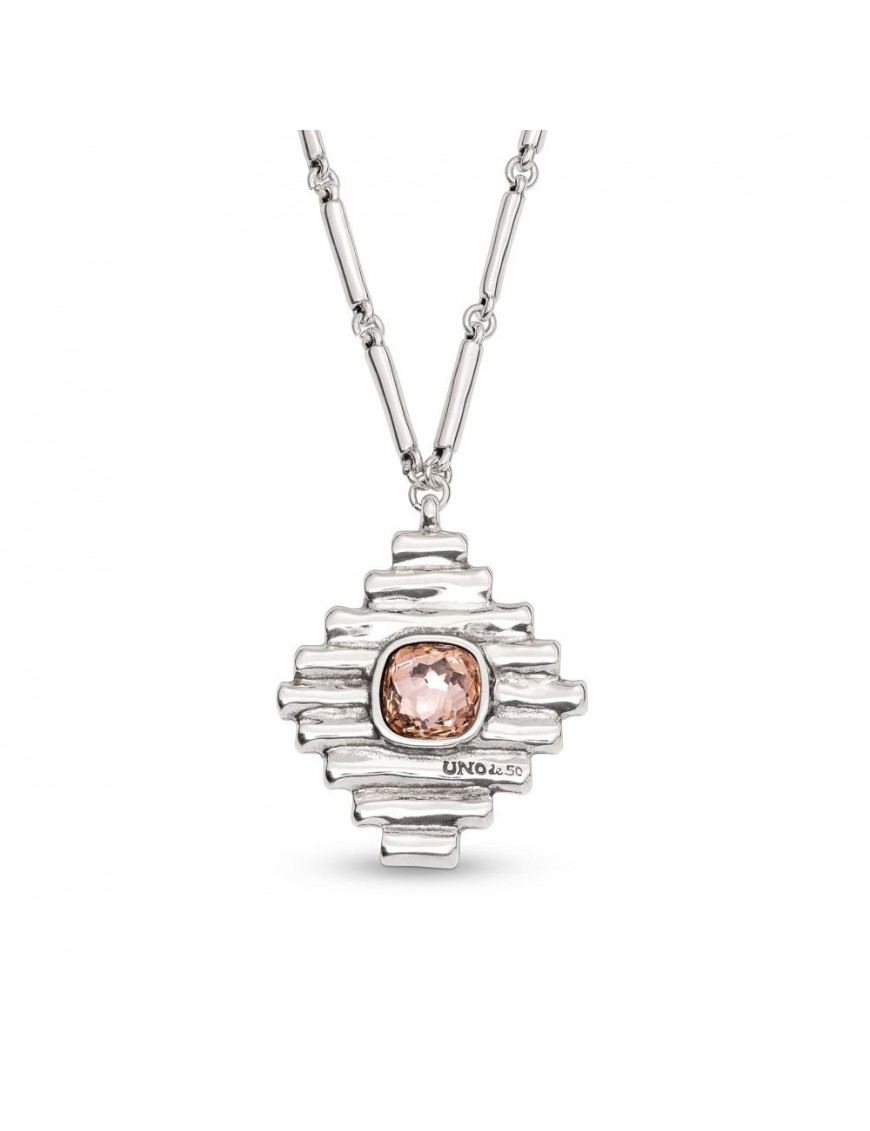 Collar Uno De 50 Bossy COL1663SALMTL0U, de metal bañado en plata de primera ley 925mls. Decorado con cristal de color rosa. Cadena de 92cm. Cierre de msoquetón.