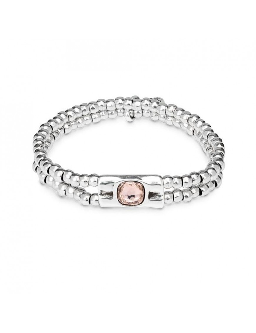Pulsera Uno De 50 Bossy PUL2133SALMTL, de metal bañado en plata de primera ley 925mls y cristal de color rosa. Elástica de 17cm.