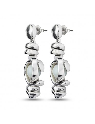 Pendientes Uno De 50 Uniqueness PEN0816AZUMTL0U, de metal bañado en plata de primera ley 925mls. Decorado con amazonita. Cierre de presión.