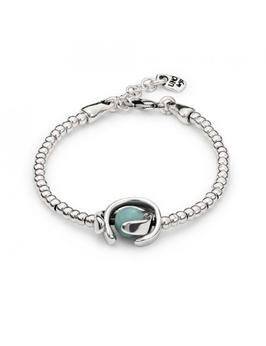 Pulsera Uno De 50 Little Moon PUL2212AZUMTL0U, de metal bañado en plata de primera ley 925mls. Decorado con amazonita. Longitud de 17cm con cadenilla de ajuste de 3cm adicionales. Cierre de msoquetón.