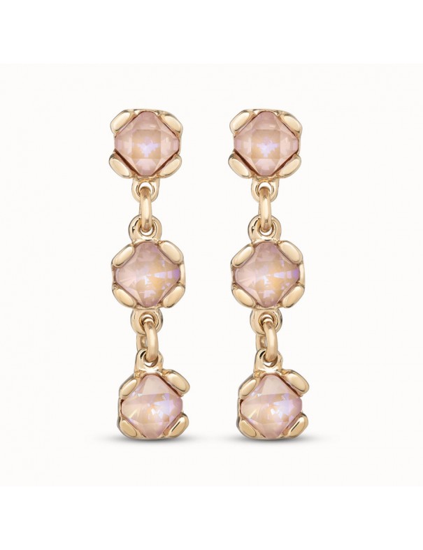 Pendientes Unode50 Sublime Pink baño en oro PEN0912RSAOROU. Están fabricados en España en una aleación especial de metales con baño de oro y cristales. Llevan cierre de presión. Garantía de tres años.