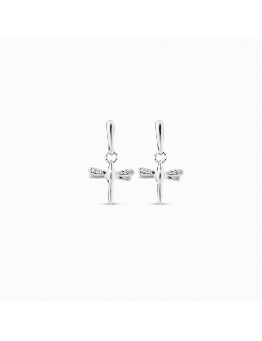 Pendientes Bañados en Plata de Ley con Forma de Libélula con Topacios PEN0866BLNMTL0U. Fabricado en España utilizando una fundición de metales con baño en plata de primera ley con forma de libélulas adornados con topacios. Garantía de 3 años.