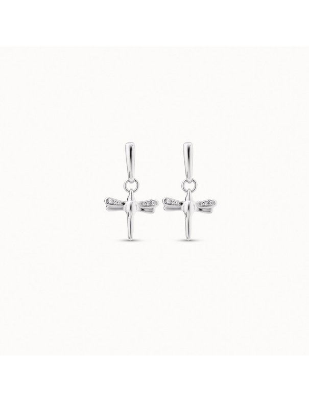 Pendientes Bañados en Plata de Ley con Forma de Libélula con Topacios PEN0866BLNMTL0U. Fabricado en España utilizando una fundición de metales con baño en plata de primera ley con forma de libélulas adornados con topacios.