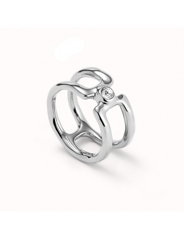 Anillo Doble Bañado en Plata de Ley con Topacio Blanco ANI0816BLNMTL12. Fabricado en España con metal bañado en plata de primera ley decorado con un topacio de color blanco. Es una talla 12.