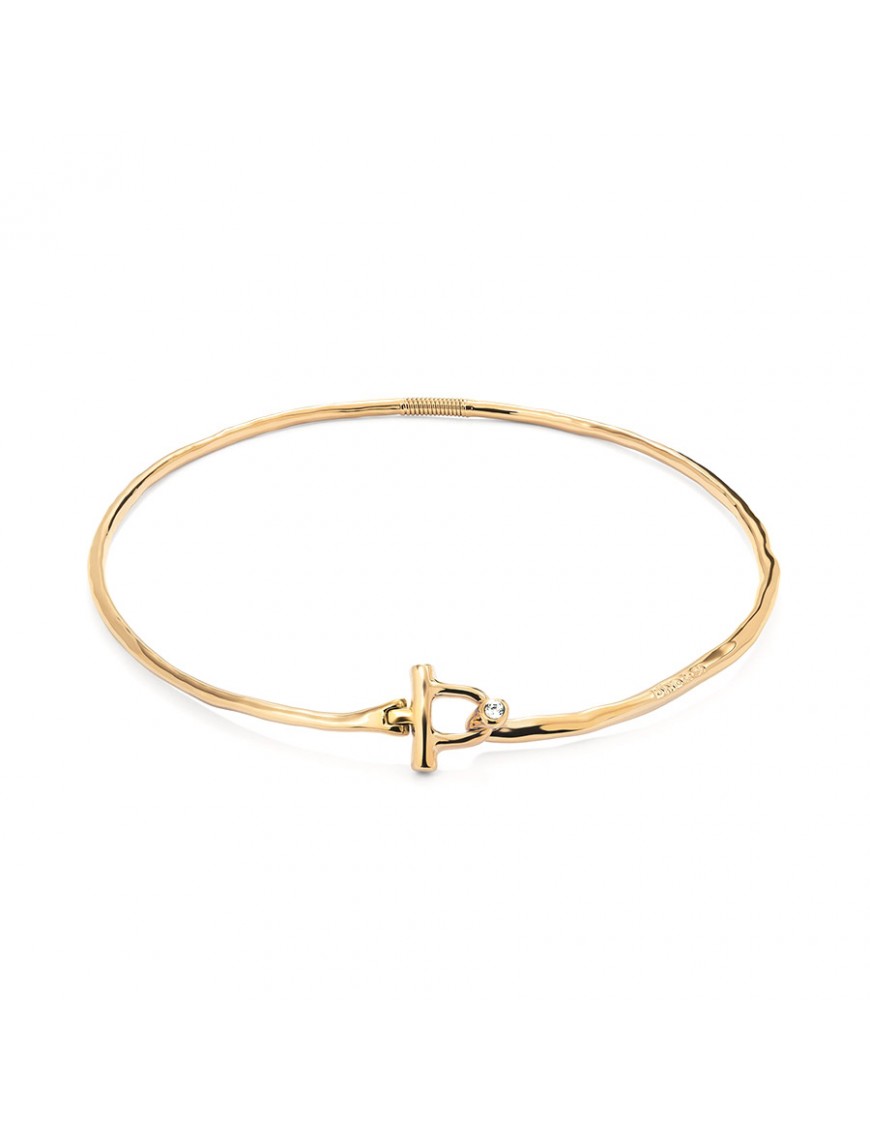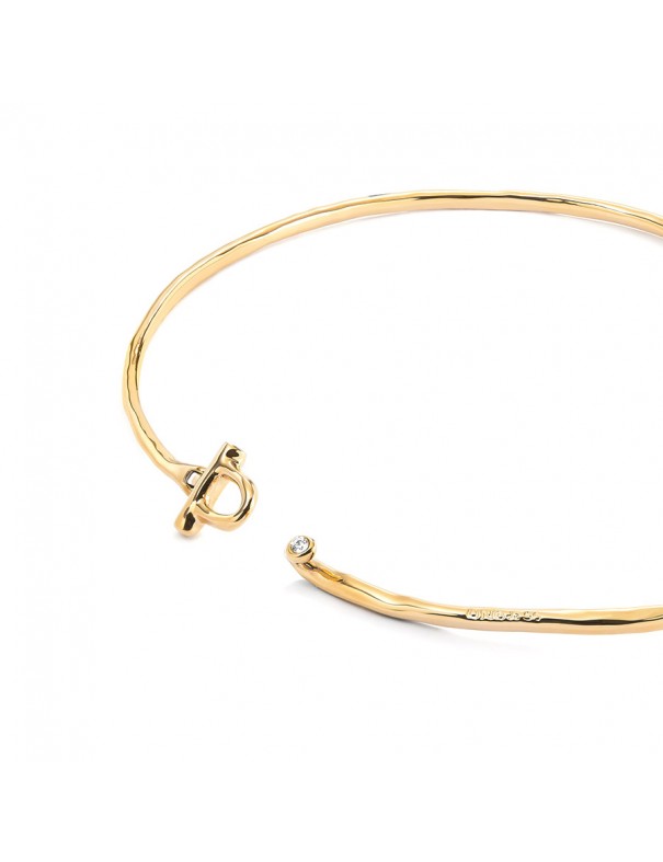 Collar Rígido con Cierre Frontal Bañado en Oro 18k con Topacio Blanco COL1938BLNORO0M. Elaborado en España con un proceso 100% artesanal con una aleación de metales con baño en oro de 18k y decorado con topacio blanco en la parte del cierre. Garantía de 3 años.