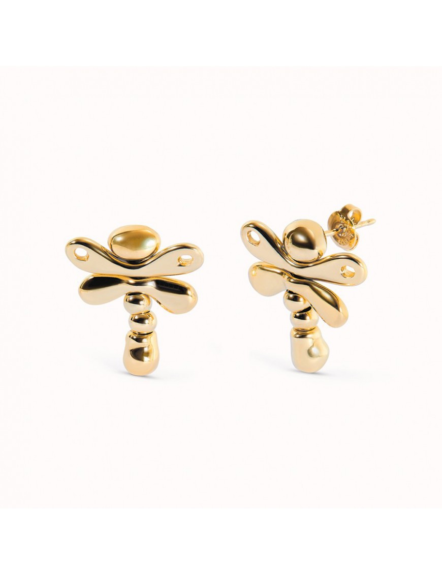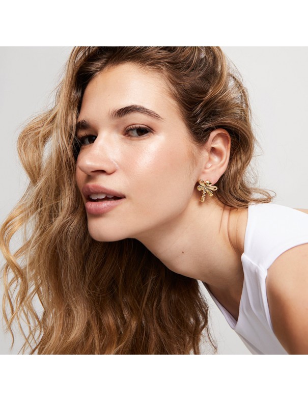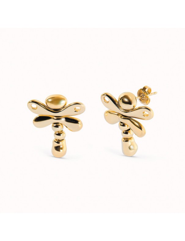 Pendientes Libélula Bañado en Oro 18 k PEN0970ORO0000U. Fabricado en España con metal bañado en oro de 18k en forma de libélula con una medida de 2.3cm. Garantía de 3 años.