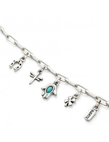 Pulsera Ser Único Eslabones y Abalorios Baño Plata PUL2565TQSMTL0M. Fabricada en España con una aleación de metales bañada en plata de primera ley con cadena formada por eslabones con 5 colgantes. Garantía de 3 años.