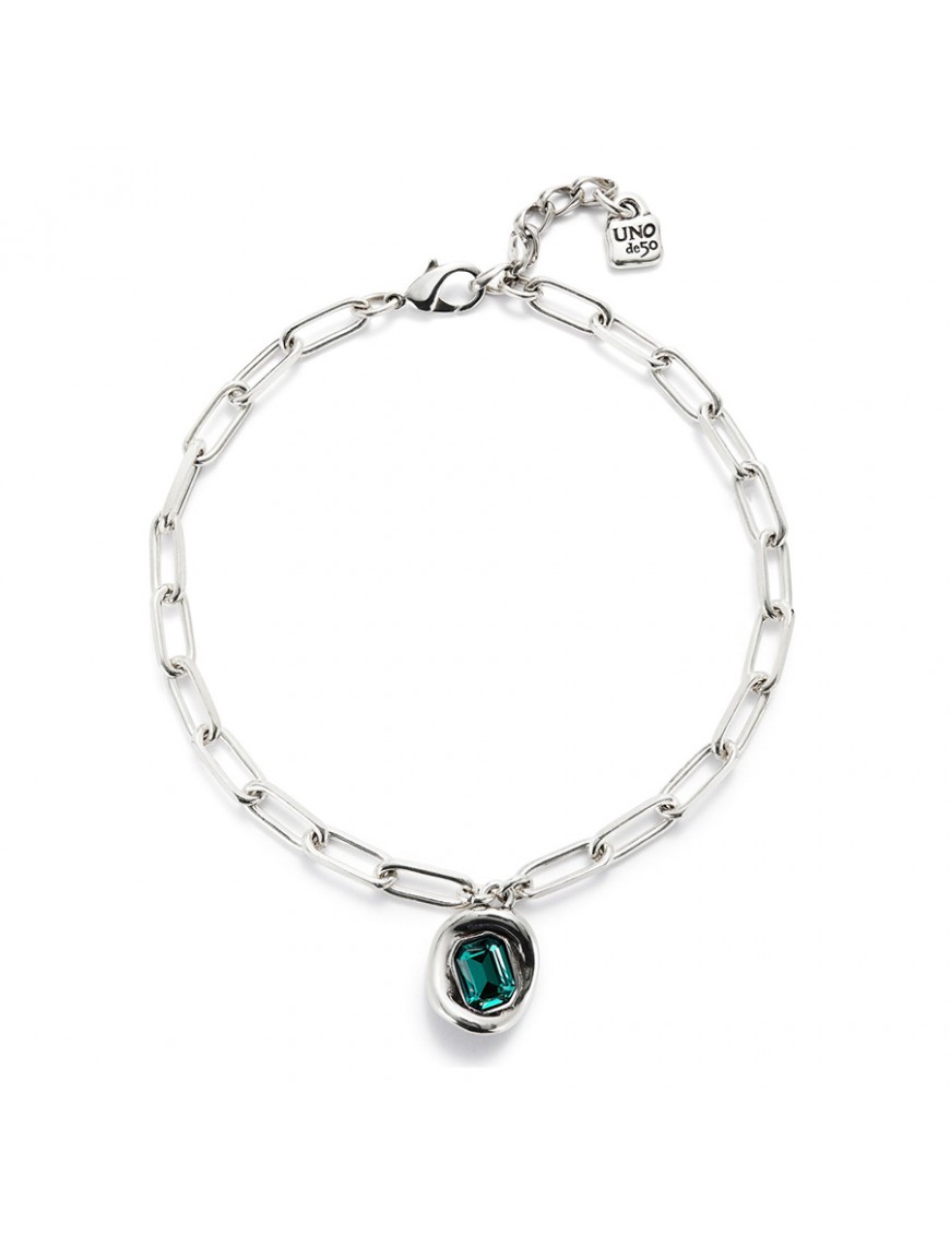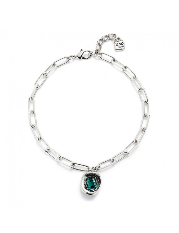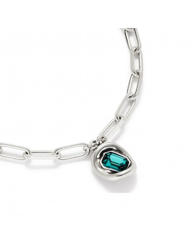 Collar Curva de Plata con Cristal Verde Ser Valiente DK COL1945VRDMTL0U. Fabricado en España con aleación de metales bañado en plata de primera ley. Cadena formada por eslabones y cristal verde cubierto por un diseño curvilíneo.