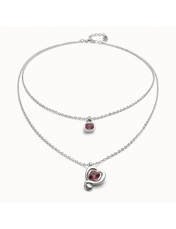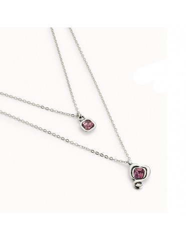 Colgante Bañado en Plata de Ley con Doble Cadena y Corazones con Cristal Rosa COL2002RSAMTL0U. Fabricado en España con latón bañado en plata de primera ley formado por dos cadenas de 39cm y 51cm adornadas con dos corazones de crista facetado rosa. Garantía de 3 años.