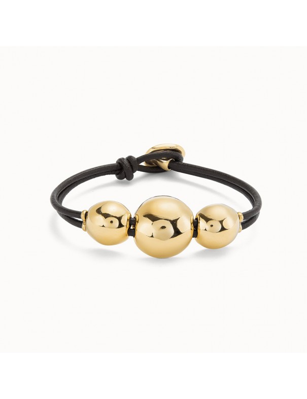 Pulsera de Cuero con Tres Bolas Grandes Bañadas en Oro de 18k PUL2522MARORO0M. Fabricada en España con cordón de cuero adornada con tres bolas de metal bañadas en oro de 18k. Garantía de 3 años.