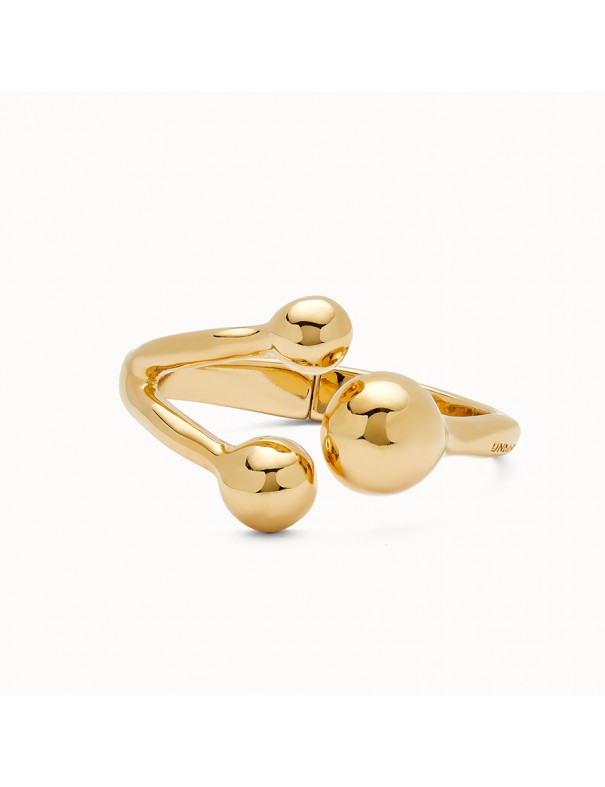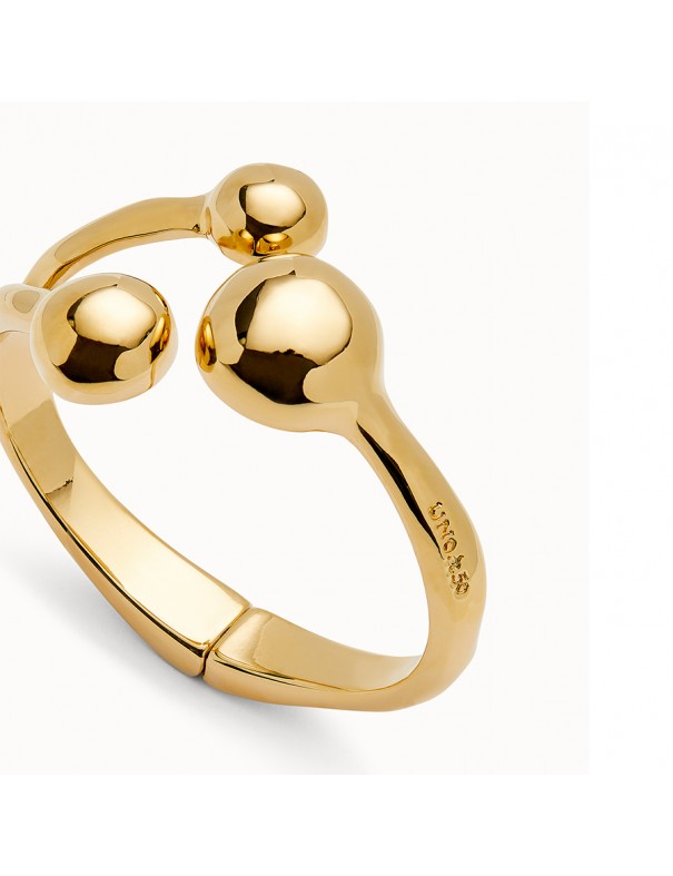 Pulsera Rígida con Tres Bolas Bañadas en Oro de 18k PUL2546ORO0000M. Fabricada en España en aleación de metales con baño en oro de 18k con diseño rígido con tres bolas y apertura de muelle para su fácil colocación.