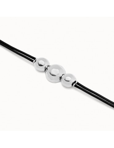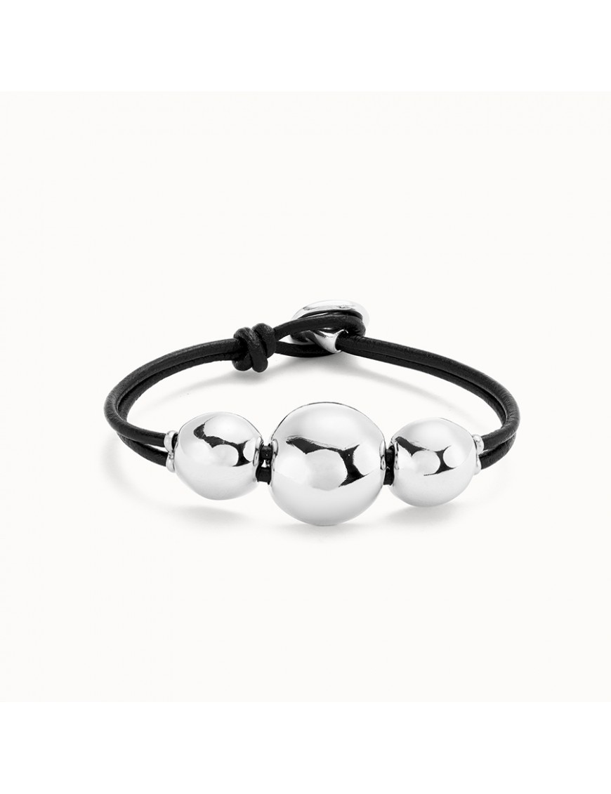 Pulsera de Cuero con Tres Bolas Grandes Bañadas en Plata de Ley PUL2522MARMTL0M. Fabricada en España con cuero y tres bolas de metal con baño en plata de primera ley. Garantía de 3 años.