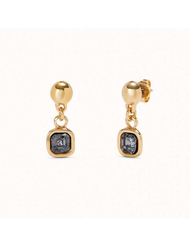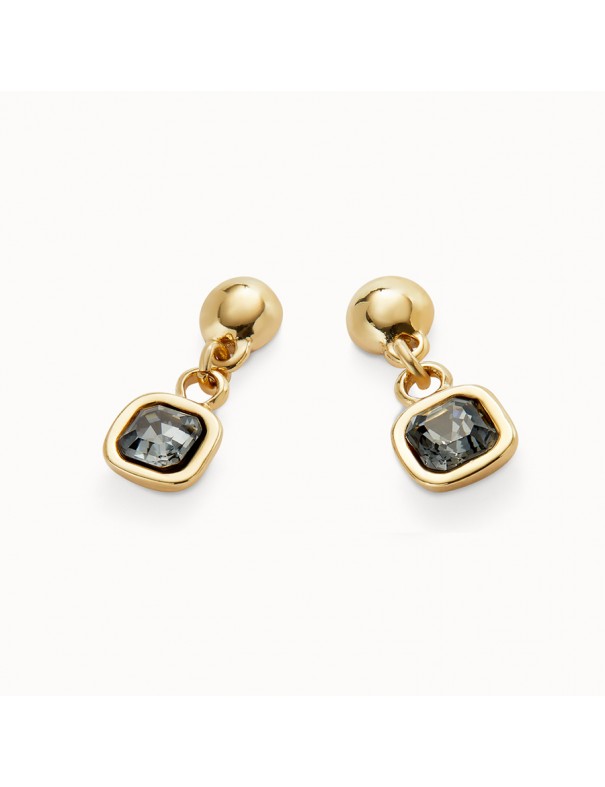 Pendientes Bañados en Oro 18k con Cristal Colgante Negro PEN0998NGRORO0U. Fabricados en España en metal con baño en oro de 18k en forma colgante y con cristal facetado en color negro. Garantía de 3 años.