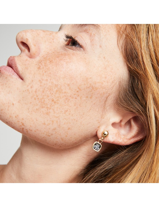 Pendientes Bañados en Oro 18k con Cristal Colgante Negro PEN0998NGRORO0U. Fabricados en España en metal con baño en oro de 18k en forma colgante y con cristal facetado en color negro.