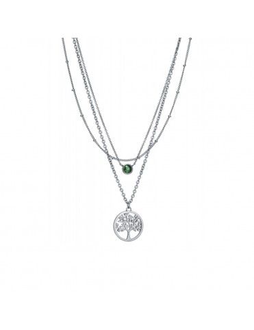 Collar Viceroy Kiss Acero Para Mujer 15104C01000, en acero hipoalergénico. Cadena triple de 34, 36 y 42cm de largacada una con cadenilla de ajuste de 3cm. Circonita en color verde y Árbol de la Vida.