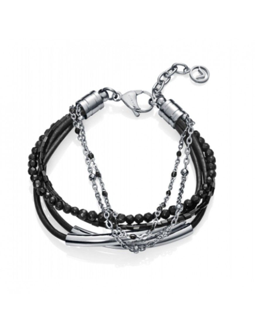 Pulsera Viceroy Chic Acero Para Mujer 75237P01010, en acero hipoalergénico y piel en color negro. Longitud de 17cm y cadenilla de ajuste de 2cm. Cierre de mosquetón.