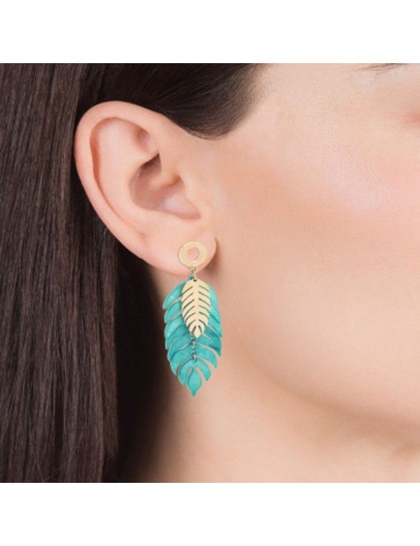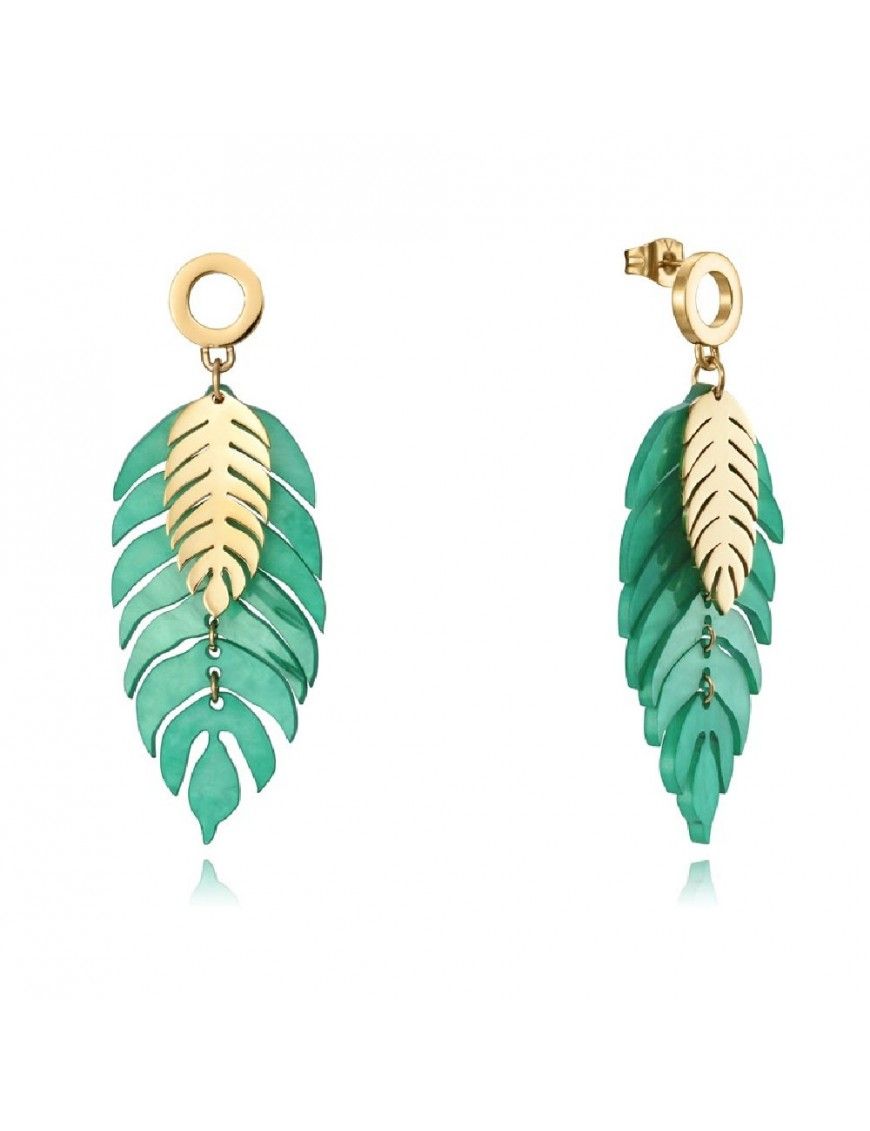 Pendientes Viceroy Acero Chic Para Mujer 15115E01016, en acero hipoalergénico bañado en color dorado y resina verde. Cierre de presión.